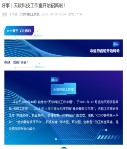 天软科技工作室成立于2009年10月,其前身为“天软科技工作小组”。2015年12月选为天河学院首批“名师工作室”。2019年4月申报成为广东技术师范大学天河学院首批“社会服务工作室”,至2022年10月,工作室三年建设期届满考核评为“优秀”。2023年,学校对工作室继续资助建设。2024年,天软科技工作室变更为学生发展工作室,更名为“天软先锋工作室。”