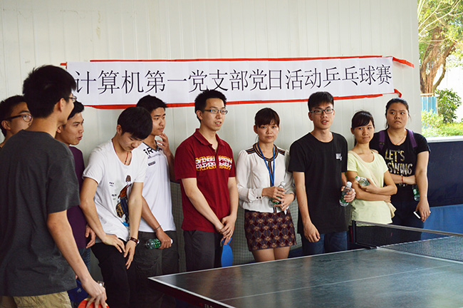 (图为计算机系第一学生党支部各党员和群众们参加党日活动兵乓球赛)