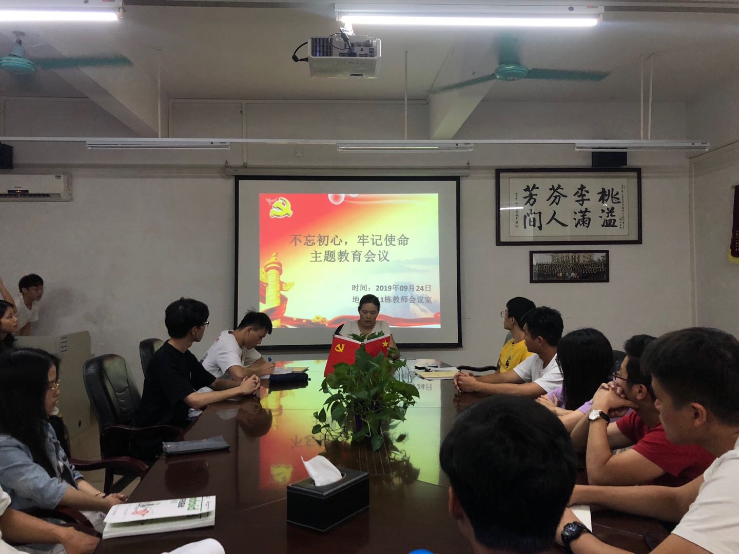 (通讯员 范明娟)9月24日,计算机学院学生党支部在11栋教师会议室开展“不忘初心,牢记使命”主题教育会。学院学生党支部书记范明娟、全体学生党员以及全体发展对象参加会议。