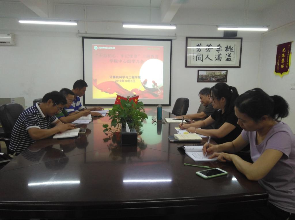 为了进一步加强二级学院党政领导班子思想政治建设,推动理论武装工作深入开展,10月8日下午,计算机学院围绕“不忘初心,牢记使命”主题开展院中心组学习会。党总支书记刘亮主持学习会,学院正副院长、办公室主任和组织员都参加了学习研讨。