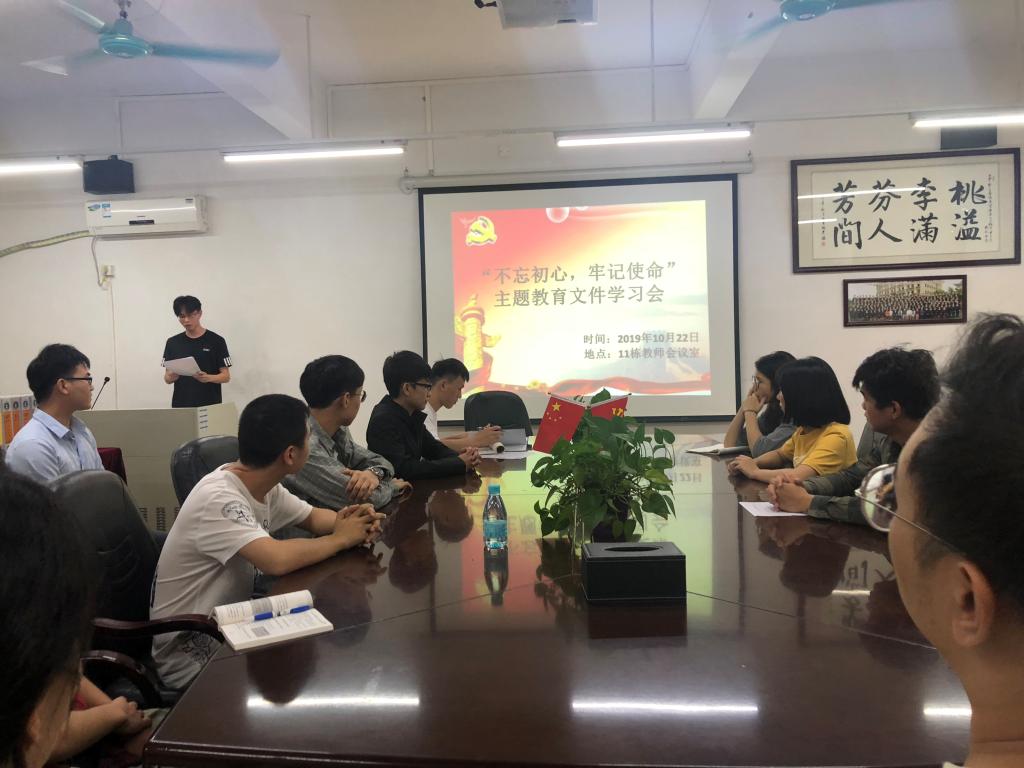 (通讯员:范明娟)10月22日,计算机科学与工程学院学生党支部于11栋教师会议召开“不忘初心,牢记使命”主题教育文件学习会,学生党支部支委成员以及学生党员参与本次会议。