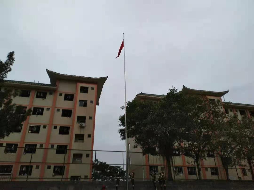 国旗,是革命的旗帜、胜利的旗帜、人民的旗帜,是祖国的象征。一声令下,全场肃静,学校国旗护卫队成员迈着整齐的步伐,护送着国旗到了升旗台。伴随着激昂的《义勇军进行曲》,在全场师生的注视下,鲜艳的五星红旗徐徐升起,伴着初升的太阳,迎风飘扬在广州理工学院的上空。在这一刻,全体师生的爱国情怀被燃起,自豪感油然而生。