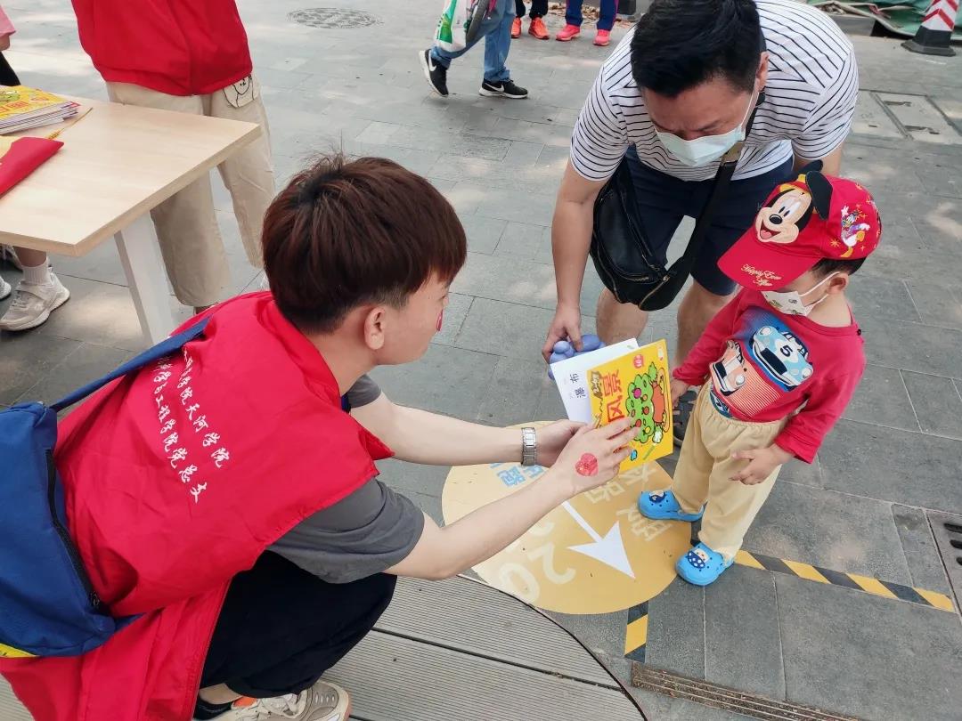 活动开始前,两名学生党支部成员位于活动入口处,指挥家长和孩子们自觉接受体温检测并有序进入活动场地内。在活动场地内,另外两名学生党支部成员为孩子们精心包装奖品及礼物。