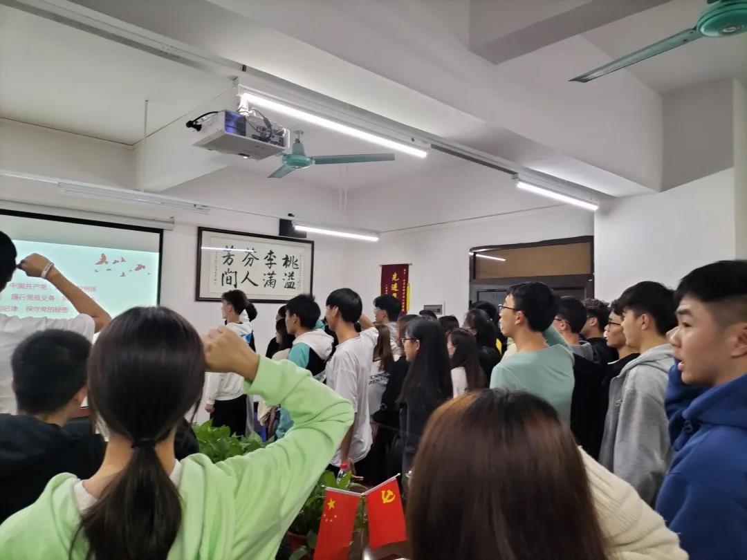 会议最后,成功转为预备党员的48名同志,在开云kaiyun体育官方网站学生党支部中心副主任吴嘉润同志的带领下宣读入党誓言。