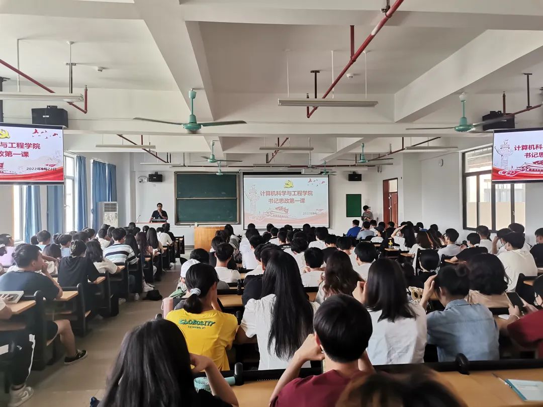(通讯员:方奕旋)9月22日下午,计算机科学与工程学院党总支书记蔡岳良在13栋402室讲授“思政第一课”,全院各班共150多名学生代表现场聆听。