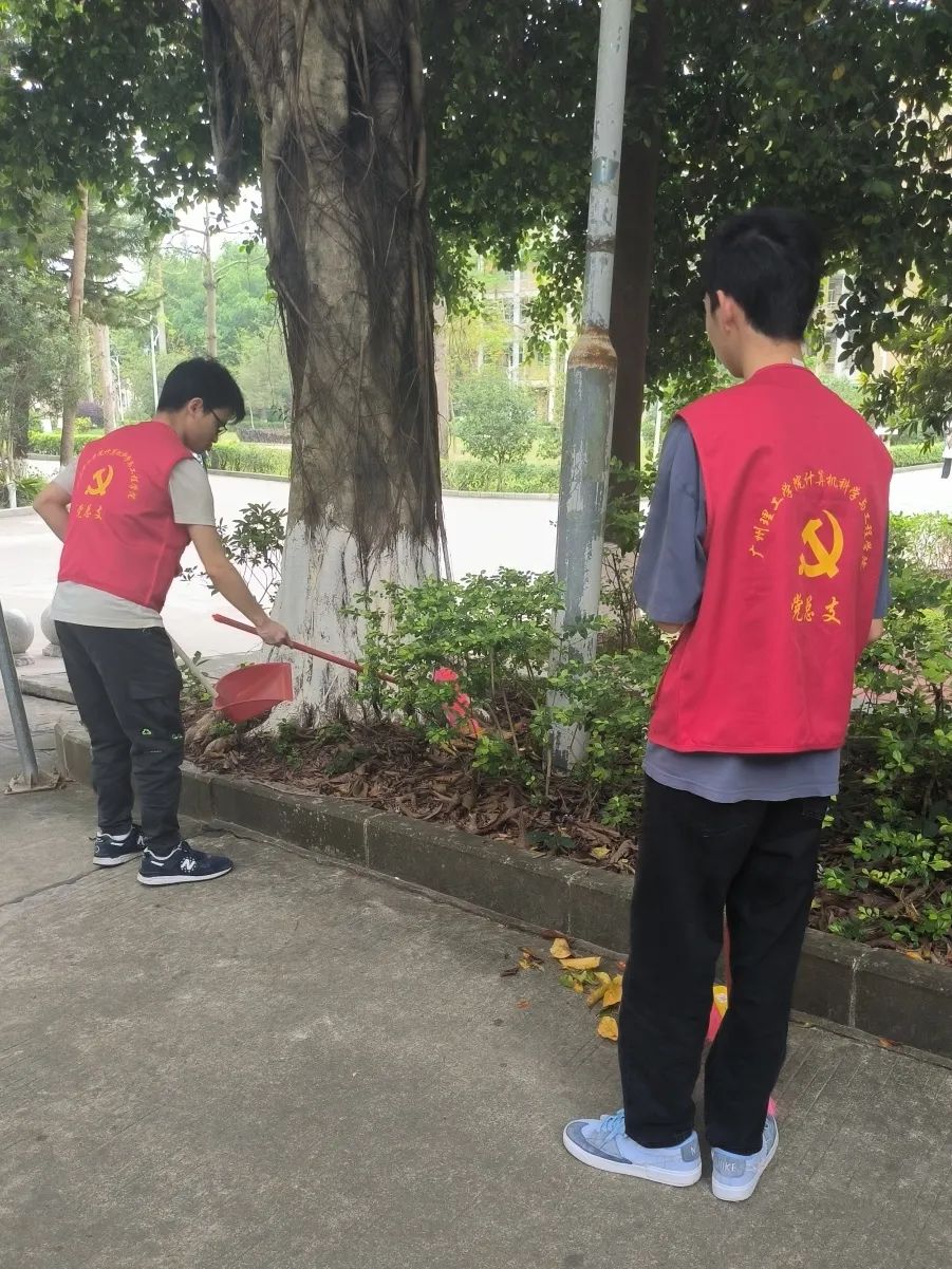 活动期间,志愿者们身披红衣,手拿扫帚,秉持“奉献、友爱、互助、进步”的宗旨,奉行“志愿、奉献、务实、持久”的原则,发扬“助人为乐、吃苦耐劳”的精神,身体力行积极投入爱国卫生运动。经过志愿者们一个小时的辛勤付出,花坛中的垃圾、路面上的落叶被彻底清除,校园面貌焕然一新。