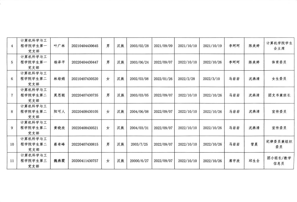 计算机科学与工程学院2023-2期中共预备党员名单公示