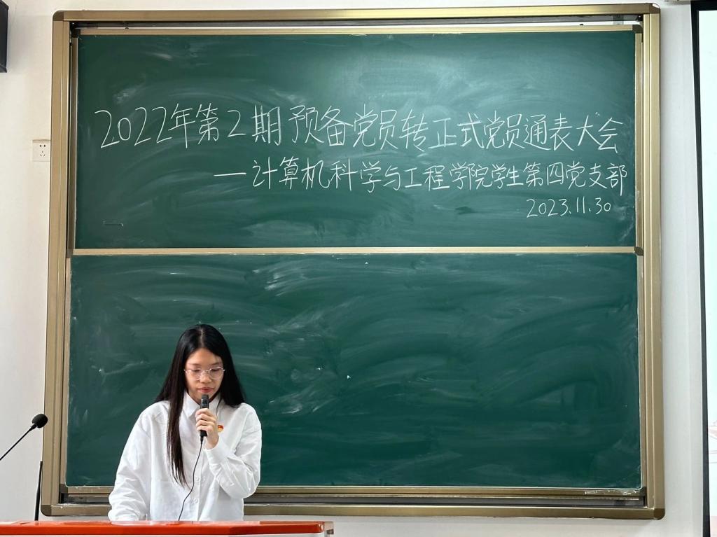 (通讯员:许君琦)11月30日下午,计算机科学与工程学院学生第一、二、三、四党支部分别于13栋401、402、403、404召开2022年第2期预备党员转正式党员通表大会,学生第一党支部书记李珂珂、学生第二党支部书记马岩岩和学生第三党支部书记席宇欣、全体党员和学生党支部工作人员按时参会。
