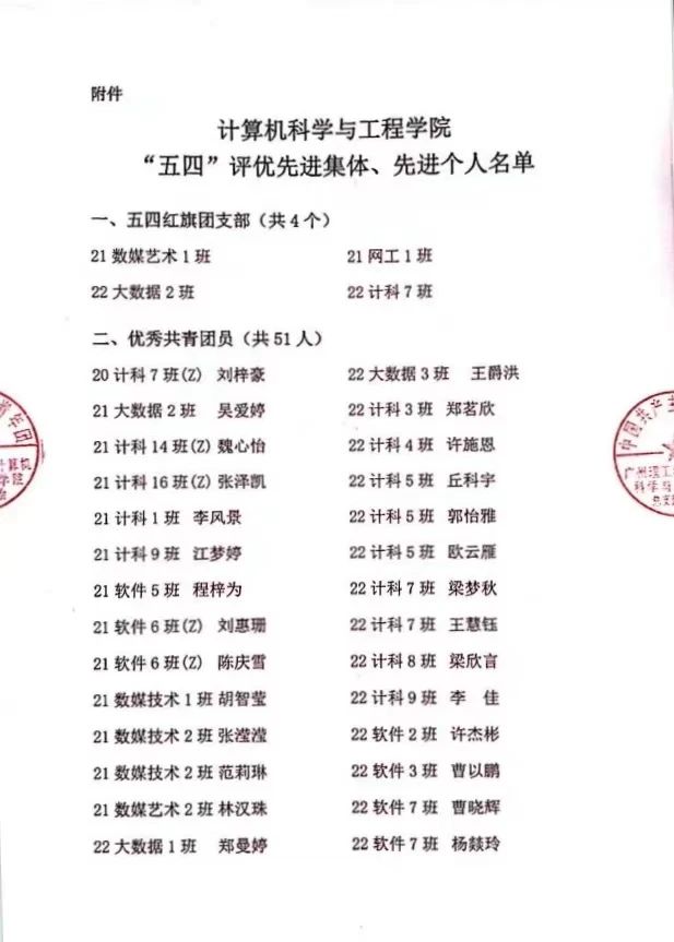 计算机科学与工程学院关于2023-2024年度“五四”评优先进集体、先进个人拟推荐的公示
