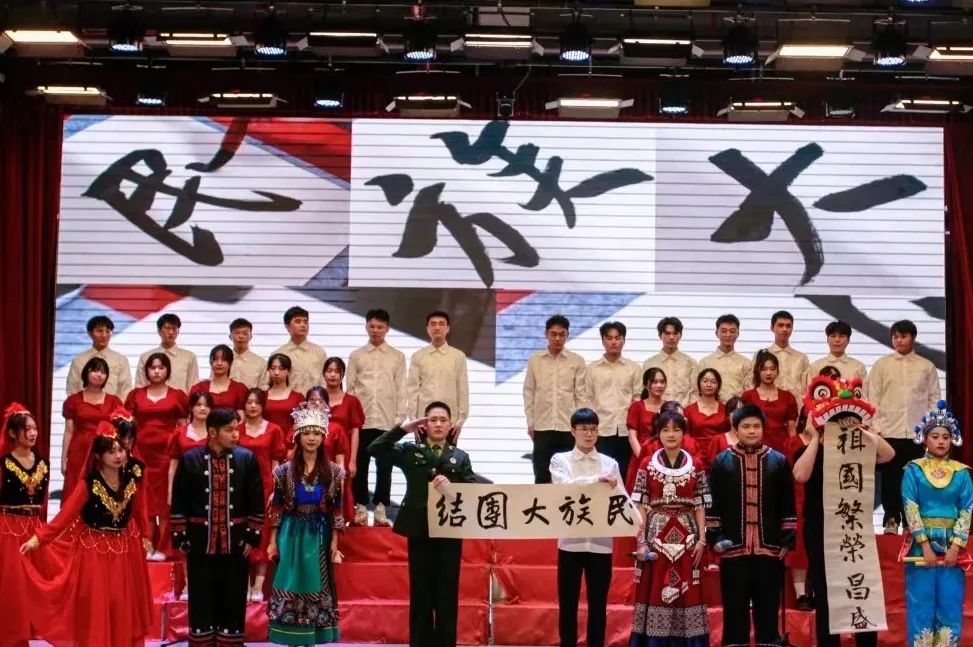 经过数天日复一日的训练,大家精神饱满,身着民族服饰,台上齐颂《民族大团结》,以舞狮和英歌舞作为开场,展示广东特色文化;随后随着舒缓的音乐,大家有感情的大声朗诵,中途以新疆特色新疆舞为插曲,感受红色的热情,最后以书法结尾,写出了民族的团结,颂出了民族的力量。最后,经过激烈的角逐和评委的打分,最终开云kaiyun体育官方网站取得三等奖的佳绩!