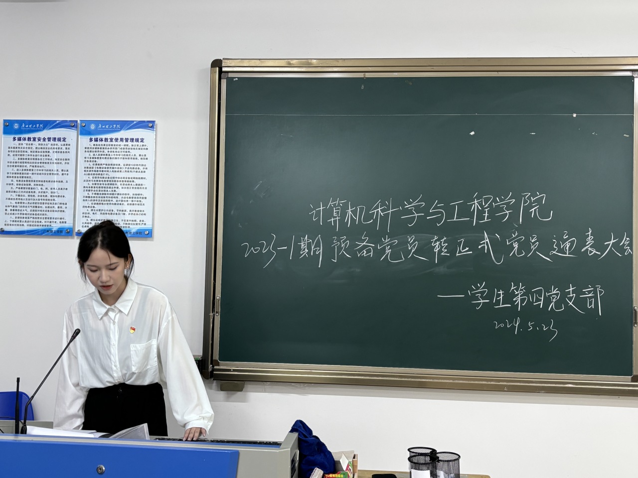 (通讯员:阳可人)5月23日下午,计算机科学与工程学院学生第一、二、三、四、五党支部召开2023-1期预备党员转正式党员通表大会。本次会议以线上线下相结合的方式进行,学生第一党支部书记李珂珂、学生第二党支部书记马岩岩和学生第四党支部书记陈彩风、27名预备党员、全体党员同志和学生党支部工作人员按时参会。