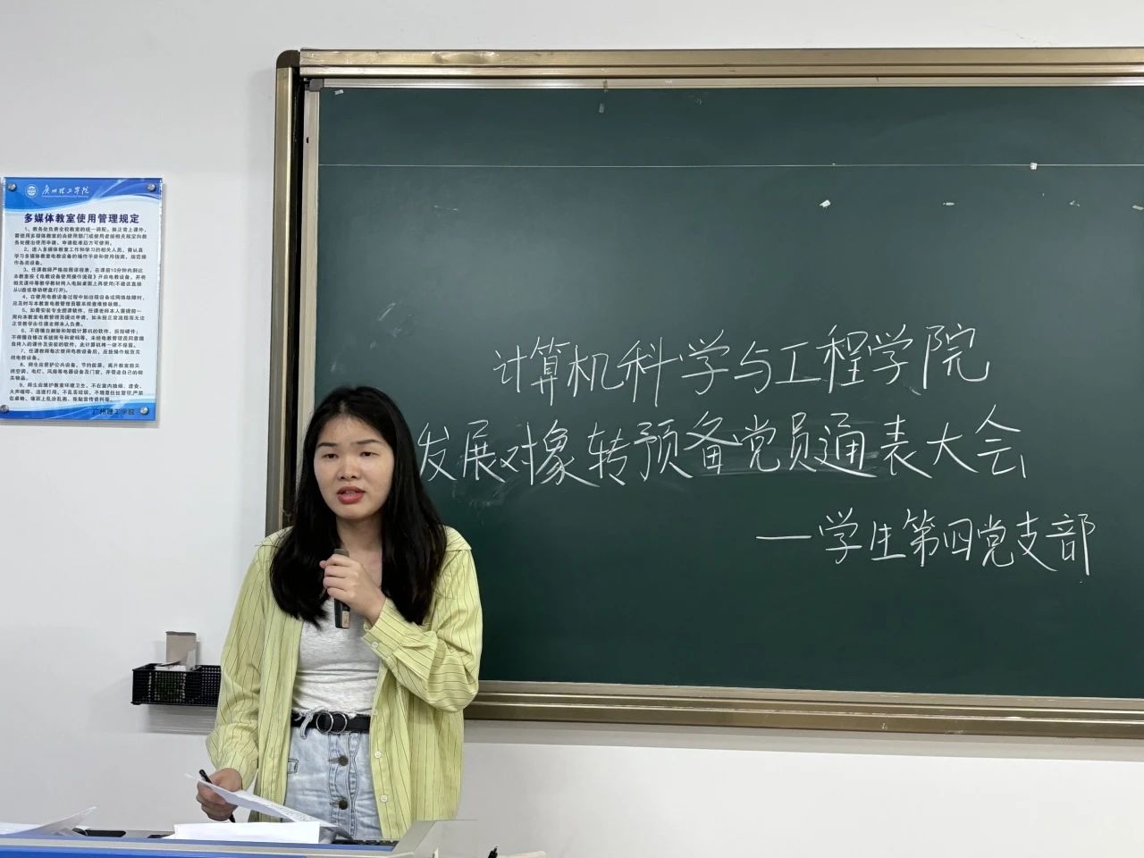 21位发展对象均发言完毕,由中共正式党员进行投票表决。该期21名发展对象名单上报学院党总支和校党委审议。随后,由学生第四党支部书记陈彩风同志宣读支部决议并作会议总结。