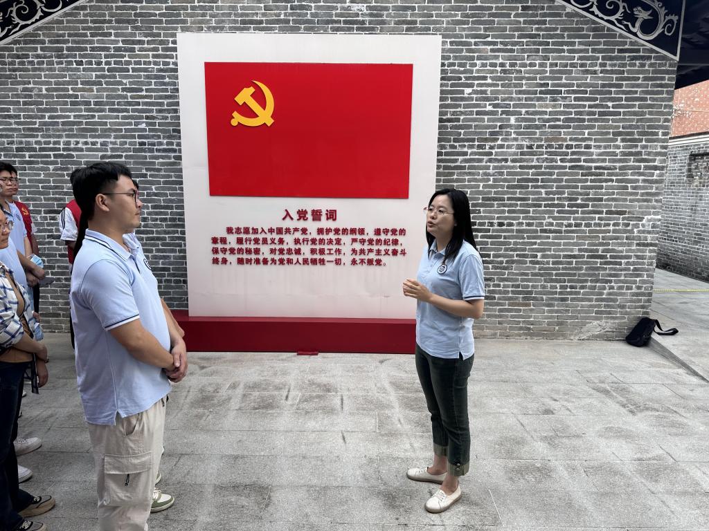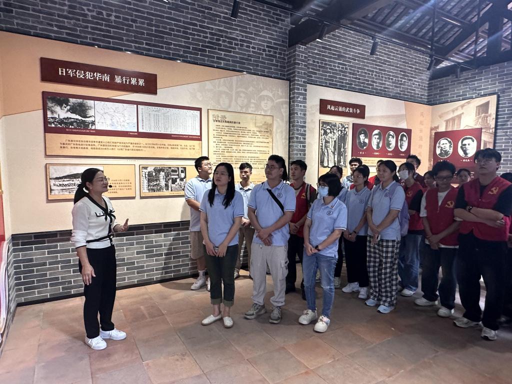 西罗乡抗日民主政府旧址位于广东省广州市白云区太和镇穗丰村,是广州地区首个中国共产党领导的抗日民主基层政权的诞生地。活动当天,教工党支部副书记陈星莹带领师生党员们参观了抗日历史展厅,认真浏览了旧址中的史实照片、文字记录及珍贵文物,聆听讲解员讲述那段烽火连天的岁月。在参观过程中,师生党员们被革命先烈们英勇无畏、坚韧不拔的精神深深打动,纷纷表示要学习他们的精神,走好当代人的长征路。