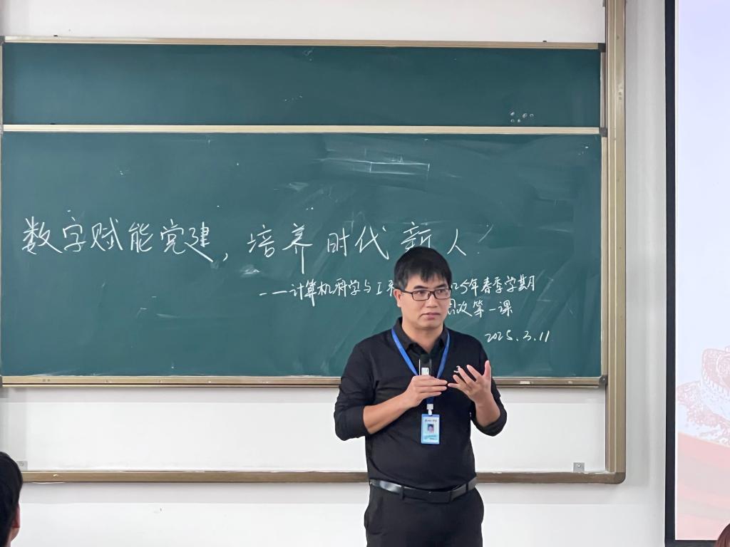(通讯员:杨晓萍)3月11日,计算机科学与工程学院在13栋教学楼402室开展了2025年春季学期书记思政第一课活动。本次活动以“数字赋能党建,培养时代新人”为主题,通过深入浅出的讲解,让学生在新学期之初就接受到全面的思想政治教育,各专业的200多名学生代表参加,共同聆听了一场别开生面的思想政治教育盛宴。