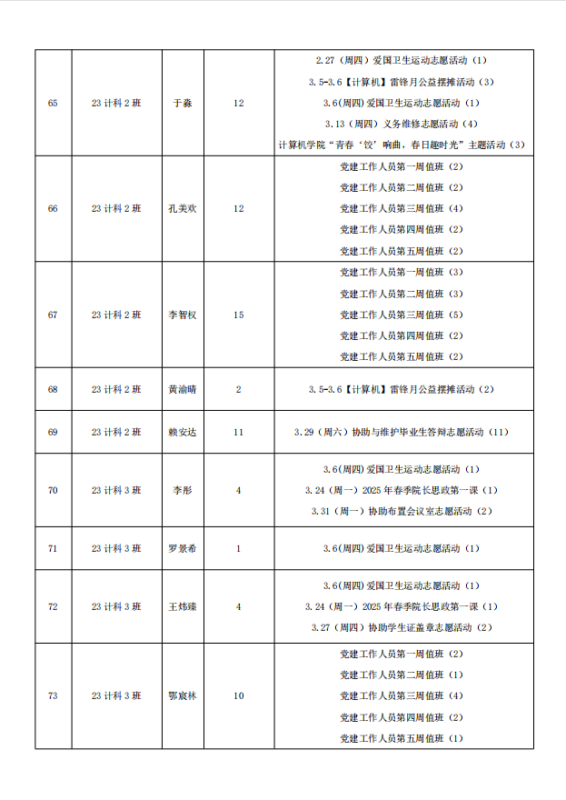 在听取培养联系人、党员和群众意见的基础上,经支委会研究决定,每月对计算机科学与工程学院各个发展阶段的同志进行服务时公示,具体情况公示如下。