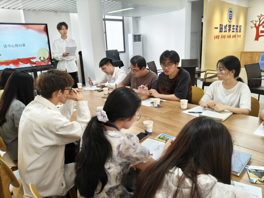 本次读书分享会由工作人员彭浩源担任主持,李珂珂老师、陈彩风老师以及十四名学生党员与学生入党积极分子均按时抵达活动现场。在主持人带领下,参会学生们进行自我介绍、并玩了一些破冰小游戏,现场氛围一下子轻松活跃了起来。分享会正式开始,学生们口中不同的看法和感受如同一片片拼图,拼凑出《乌江引》的样子,但在各种不同观点下蕴藏着学生们同样的一个感悟,他们都被这本书里勇于自我牺牲、甘做无名英雄的大义所打动。学生们不约而同地认为,吃水不忘挖井人,今天的美好生活源自先辈们无私的付出,我们不应该把他们遗落在历史长河里。