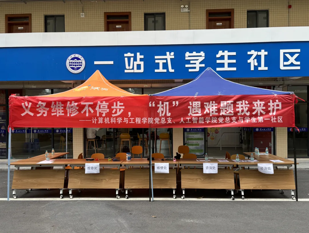 (通讯员:关颖钎)5月14日下午,计算机科学与工程学院党总支与人工智能学院党总支在学生第一社区联合开展“义务维修不停步,‘机’遇难题我来护”主题志愿活动。两学院学生组成的志愿服务队化身“技术能手”,为同学们提供免费的电脑设备维修服务,用专业知识践行服务初心,传递奉献精神。