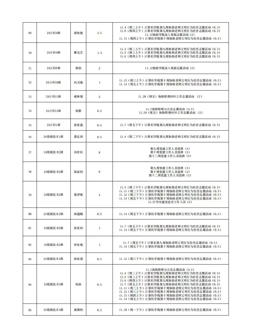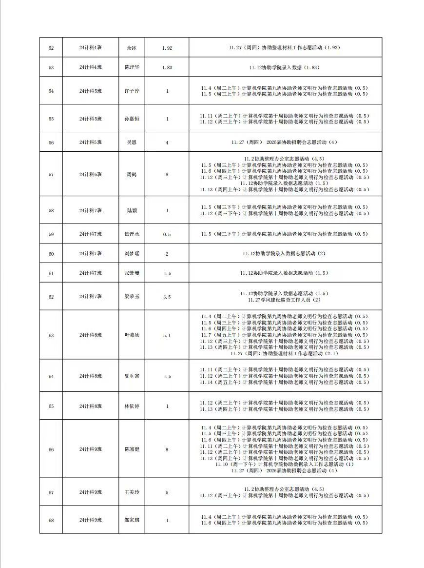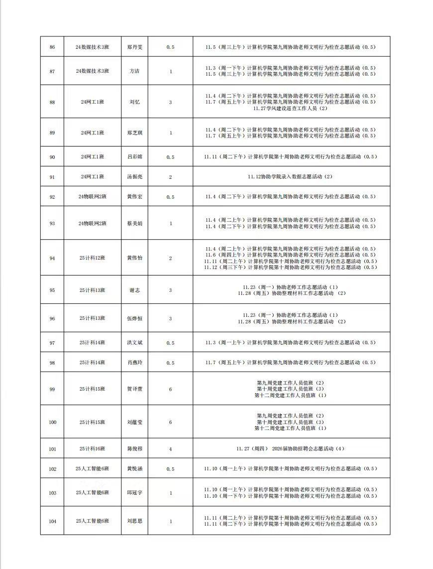 计算机科学与工程学院党总支2025年11月份服务时总汇公示