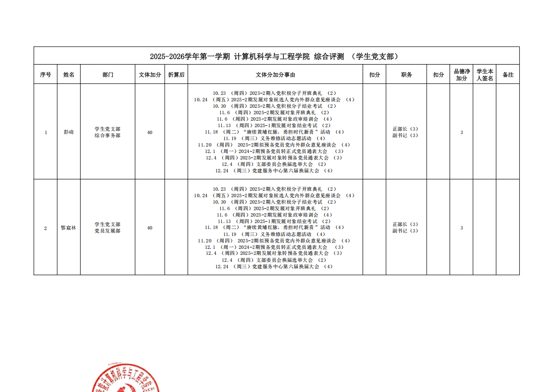 计算机科学与工程学院学生党支部2025-2026学年第一学期综合评测公示
