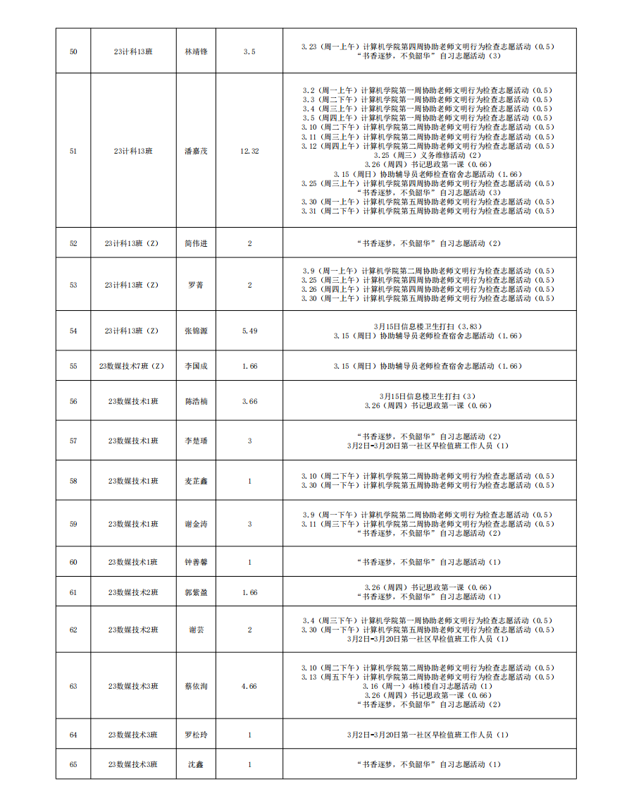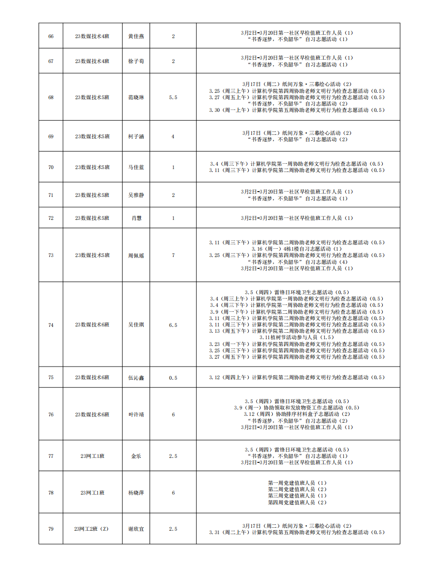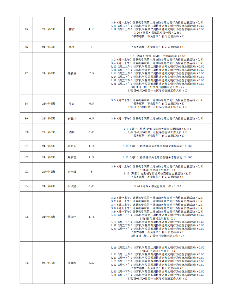 2026年3月份服务时总汇公示名单
