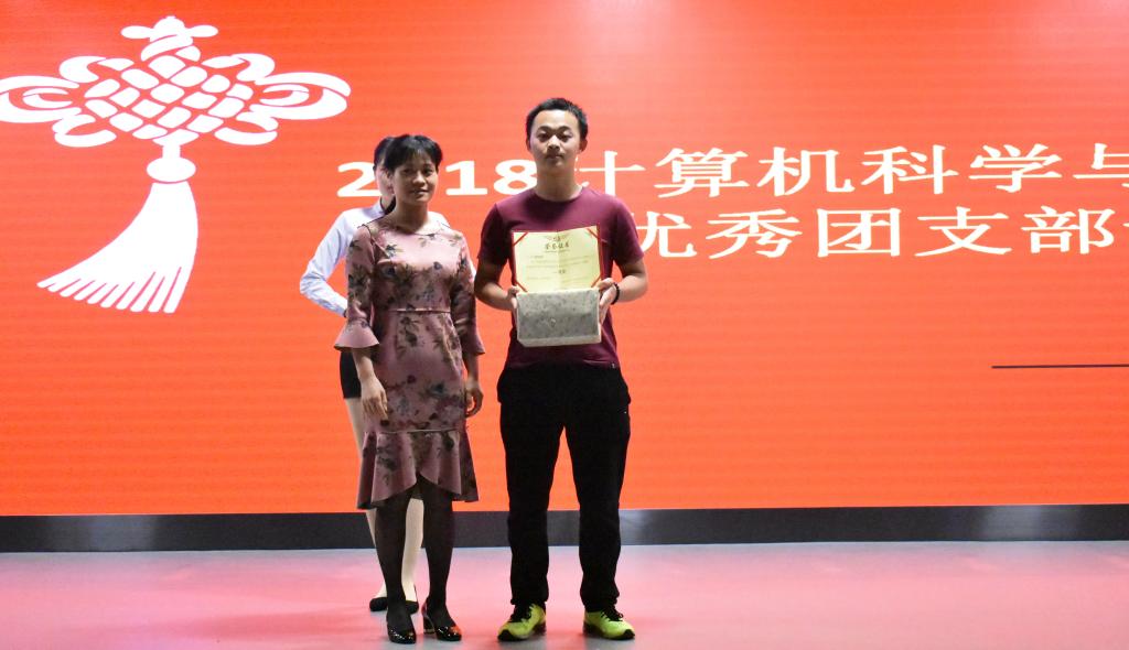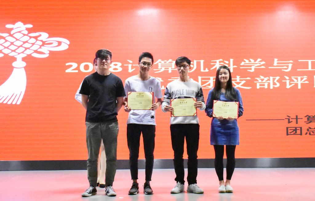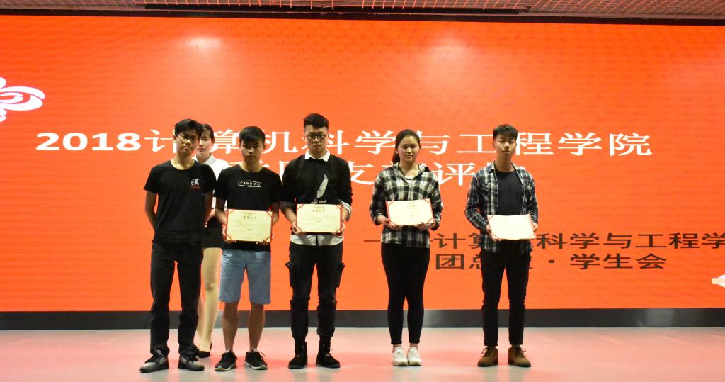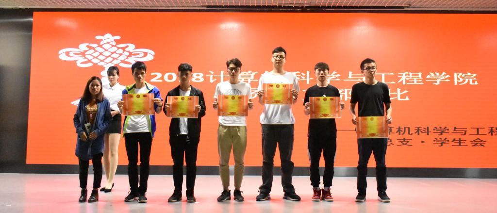 获得三等奖的班级有4个,分别是17计科5班、17软件3班、17数媒1班、17软件2班,由计算机科学与工程学院学生会副主席吴汉健为获奖班级颁奖。