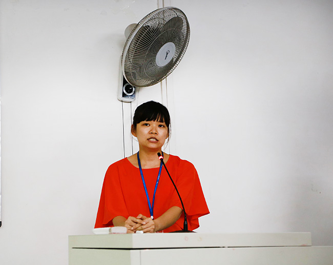 大会第二环节:团总支书记何祉谕针对学生会各个部门工作作总结。她就本学期学生会举办的47场学生活动以及制定章程、建立部门制度、归档这三项重点工作提出了一些建议和看法。她强调,这一届由团总支副书记黄泰宁、学生会主席陈松泽带领的主席团成员在学生会工作中也起到了很好的先锋带头作用,另一方面,学生会干部与干事之间在工作过程中做到了相互沟通和协调,充分展现出计算机系团总支学生会团结与合作的一面。