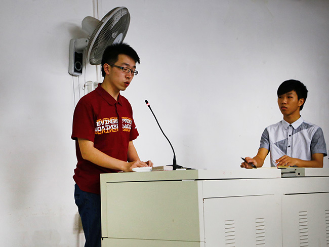 大会第三环节:各个部门为这一学期工作作总结。每个部门代表都上台分享了各自半年来丰富的工作经验和体会。接着,团总支副书记黄泰宁为部门总结作了讲话。在讲话中,他也道出了每个部门工作的不易和辛苦。