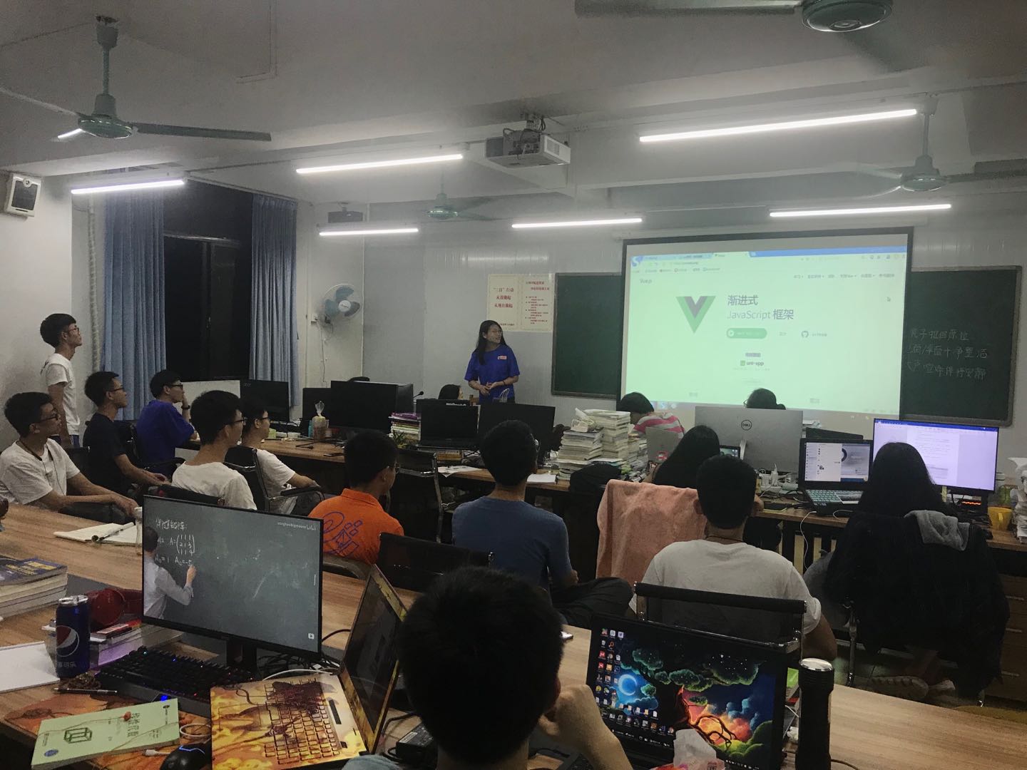 全栈工程师郭腾彬分享了他的学习与工作经验。在简单介绍了关于前端与后台相关知识后,郭腾彬提出了他对后台框架技术的看法,并向学弟学妹们讲述了现在公司中常用的构架技术。刘春梅介绍了前端的相关知识,重点介绍了现在前端流行的vue、react、angular等框架,同时向学弟学妹们讲述了自己的学习方法与技巧,最后阐述了学好这些知识对于公司面试及从业的重要性。