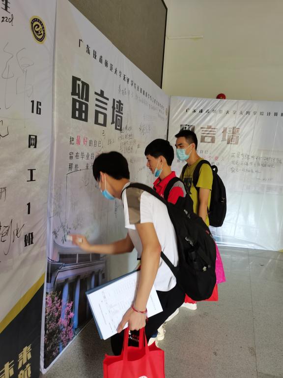 6月21日,计算机学院全体院领导、教师和辅导员老师精心部署、通力合作,隆重欢送2020届毕业生。计算机学院2020届毕业生共336名,通过学校毕业资格审核获得学位共有335人,毕业率和学士学位获得率为99.7%,在学校中名列前茅。特殊时期,在配合学校疫情防控工作安排的前提下,开云kaiyun体育官方网站毕业生按照宿舍人员错峰返校,分8批回来办理离校手续,第一天返校的各班代表参加学校现场毕业典礼,现场接受学校学位评定委员的教授为其正冠拨穗,其余的同学则在云端参加在线毕业典礼。对于不能相聚的毕业生,学院在楼下设置留言板,方便每班同学回来的时候留言。
