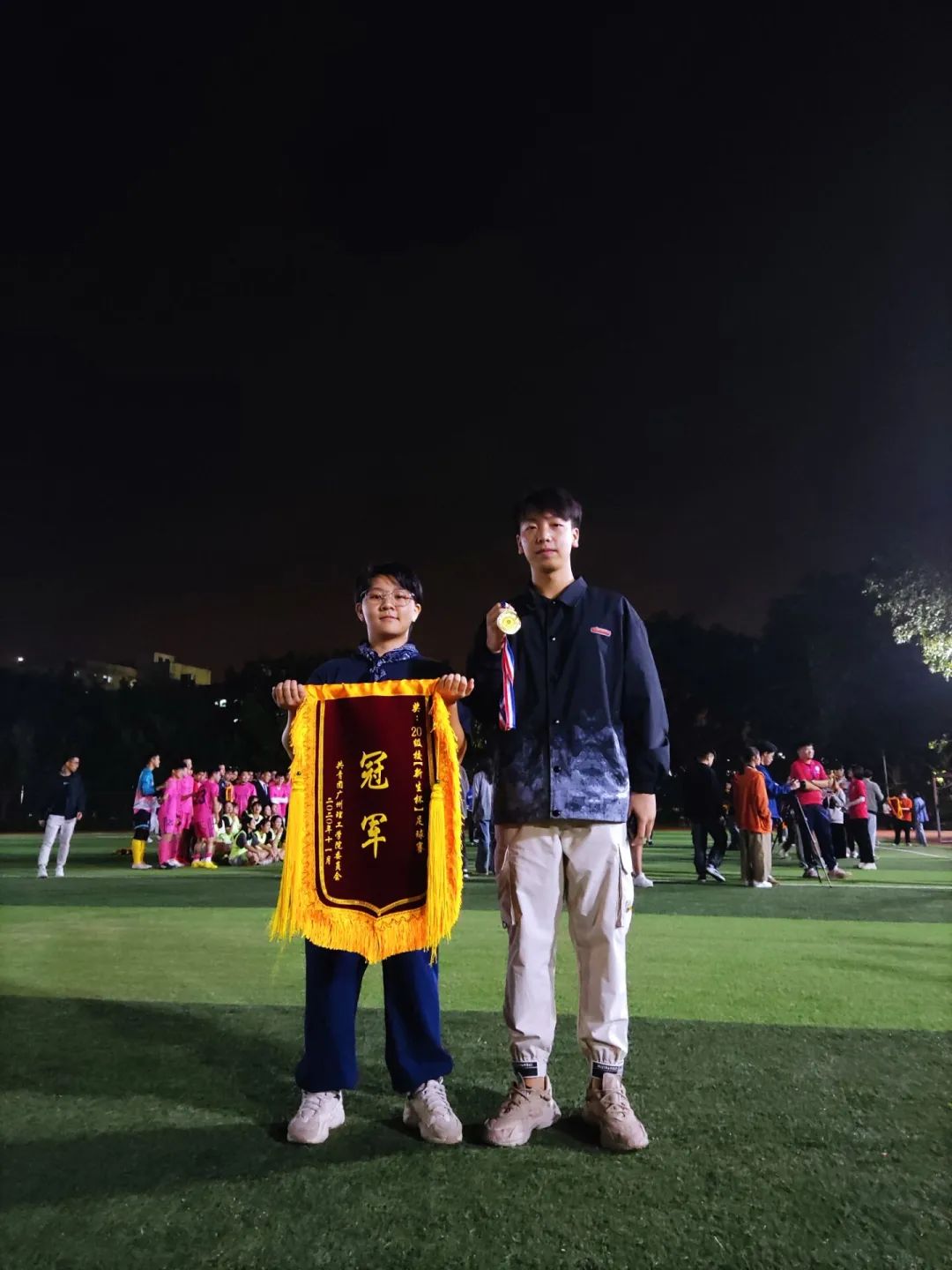 在足球新生杯比赛中,足球球员们配合默契,上半场时险些让对方进球,我方守门员也十分给力拦下对方的进球,球员们个个生龙活虎,在球场上你追我赶,比分不分上下。而在下半场时我方球员们通过战术配合成功踢进一球,拿下了全场比赛第一分,赢得了一片喝彩。而后,球员们越战越勇,现场的气氛也达到了高潮,我方球员穷追不舍,在比赛剩余十几分钟时成功又进一球。最终,开云kaiyun体育官方网站以2:0的成绩成功拿下足球新生杯冠军,同时,球员张文斌获得了“最佳守门员”的奖项。