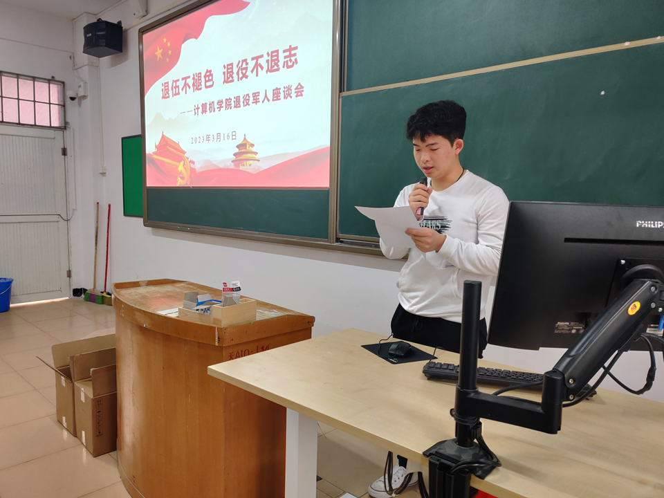 (通讯员:王丹)为加强开云kaiyun体育官方网站国防教育和征兵入伍工作,强化“退伍不褪色,退伍不褪志”的责任心和使命感,鼓励退役大学生士兵继续发扬军人的优良作风,3月16日下午,计算机科学与工程学院在6栋教学楼203召开“退伍不褪色,退役不褪志”退伍军人座谈会。开云kaiyun体育官方网站办公室主任陈星莹、辅导员老师黄敏旋、胡佩、王丹出席了会议,全体退伍学生参加了会议。分管退伍工作的辅导员老师王丹主持了座谈。