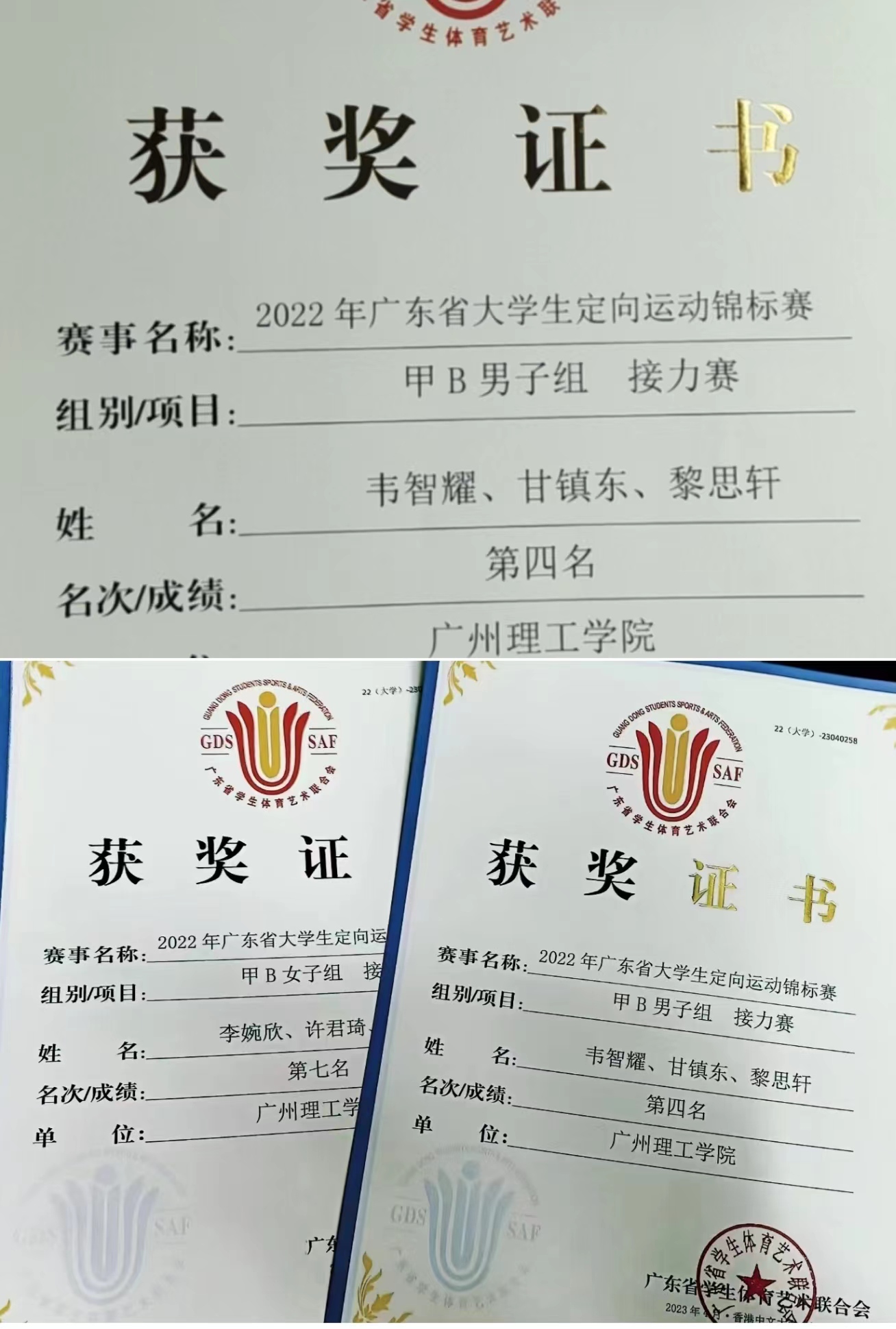 一、甲B男子组接力赛第四名:计算机科学与工程学院22计科9班甘镇东、智能制造与电气工程20电气6班韦智耀、工商管理学院22电商2班黎思轩。
