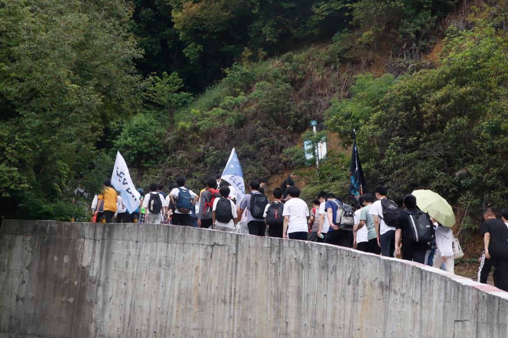 活动开始,同学们雄赳赳气昂昂地出发了。学院专门组织了退伍军人大学生护卫队,各班辅导员走在队伍前列,一路为各班护航。春末夏初时节的帽峰山空气清新、景色宜人。师生们一路谈笑风生,穿过穗丰村乡村小道,从小石船景区直入山道,一边领略帽峰山森林公园的云山迷雾,听山涧林泉潺潺,赏密林繁花,一边向海拔534.9米的主峰进发。经过近2个小时的徒步,21软件1班同学率先登顶。