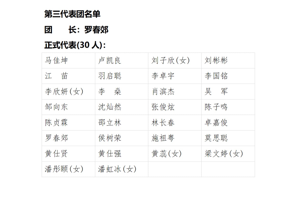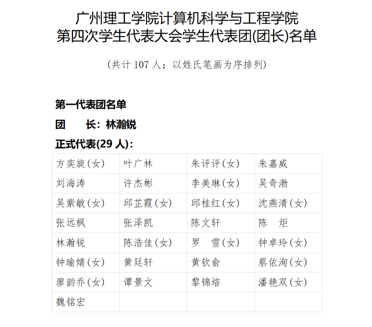 计算机科学与工程学院第四次学生代表大会学生代表团(团长)名单公示