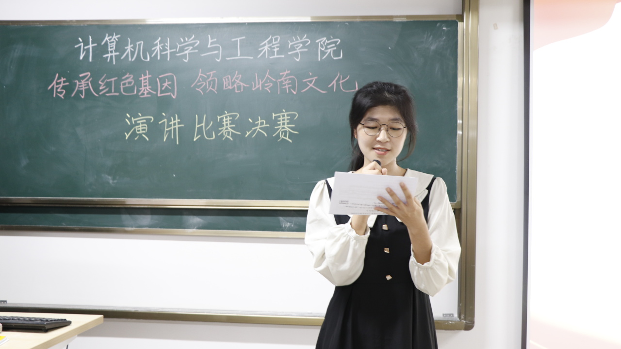 (通讯员:王灿如)11月7日晚,计算机科学与工程学院“传承红色基因,领略岭南文化”演讲比赛总决赛在13栋609隆重举行。辅导员赖彬彬老师,学生会执行主席谭景文,2022年计算机学院演讲比赛一等奖获得者张静,2022年计算机学院演讲比赛二等奖获得者吕真欢担任大赛评委。