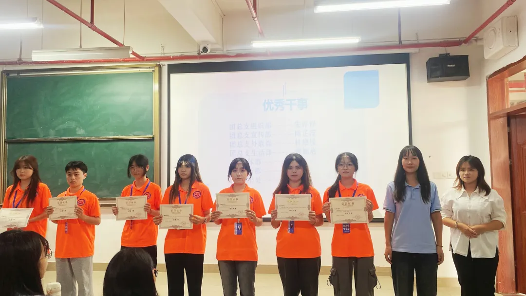 会上,主席团代表叶广林进行了工作总结,回顾了过去一年中团总支·学生会的各项工作,对全体成员的辛勤付出表示了衷心的感谢,并对新学期的工作提出了展望和要求。各部门代表依次上台,汇报了各自部门在过去一年中的工作成果、经验教训以及未来的工作规划。随后,邓梦铃老师、张向前老师、顾湘云老师、赖彬彬老师分别为优秀干事、工作积极分子、优秀干部和优秀部门颁发荣誉证书并合影留念。并由工作积极分子代表姚依鑫、优秀干事代表林增悦、优秀干部代表陈奕纯发表获奖感言。