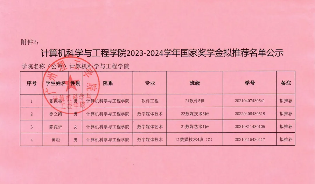 根据《广州理工学院学生处关于印发《2023-2024学年奖学金评比工作方案》的通知》广州理工学函〔2024〕148号,本着公平、公开、公正的原则,经学院国家奖学金评选工作领导小组比照评选条件开展评议,现将评比结果予以公示,公示期为2024年10月8日至10月10日。