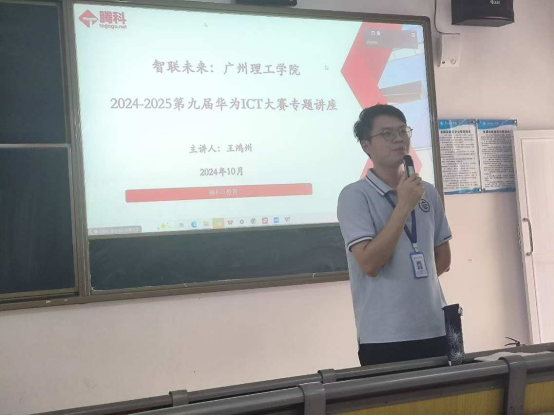 2024年10月17日(星期四)下午三点整,计算机科学与工程学院于6号楼108教室举办了2024-2025年度第九届华为ICT大赛中国区实践赛的宣讲会。本次活动由计算机学院的陈易平副院长,程威霖老师与江春婉老师精心策划并组织,同时得到了广州腾科网络技术有限公司的鼎力支持与深度参与,该企业派出了经验丰富的王鸿州企业导师作为主讲嘉宾,详细阐释了华为ICT大赛的赛程安排及核心要义。