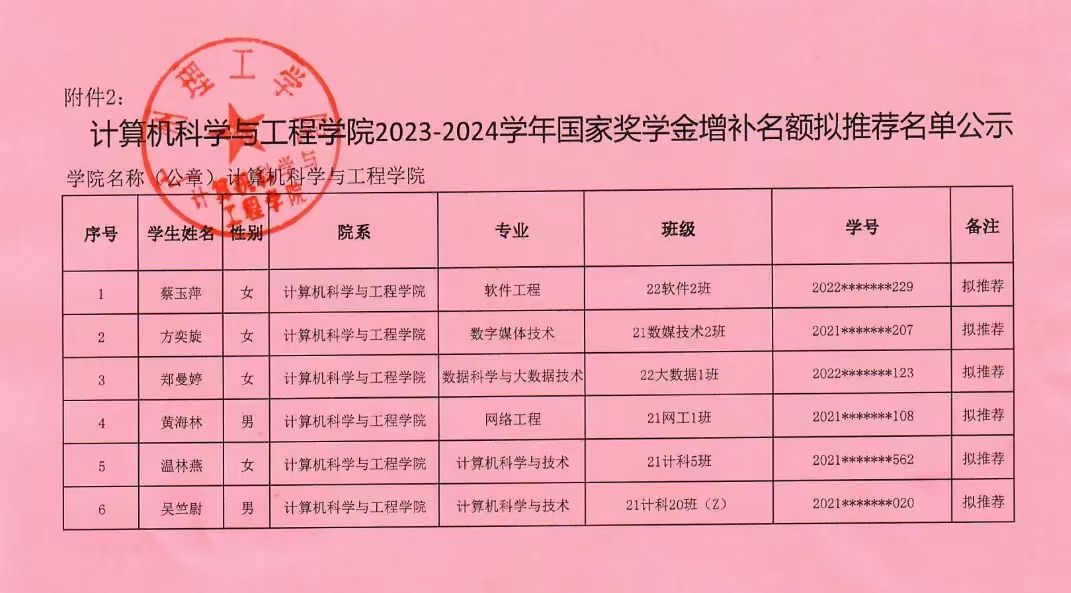 根据《2023-2024学年奖学金评比工作方案》(广州理工学函〔2024〕148号)及上级相关文件要求,开云kaiyun体育官方网站开展国家奖学金增补工作。经学生本人提出申请、辅导员初审、二级学院严格评选等程序,现将得2023-2024学年国家奖学金增补的蔡玉萍等6位同学名单予以公示。