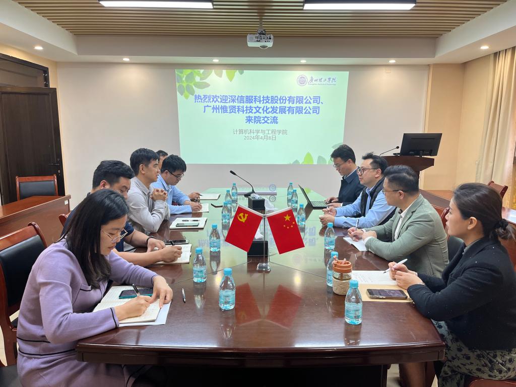(陈星莹)4月8日,深信服科技股份有限公司校企合作部吕沐阳主任、彭杰副主任一行莅临我校,就进一步推进校企合作事宜展开深入交流。计算机科学与工程学院院长贺敏伟带领领导班子成员及计科系主任参加交流。