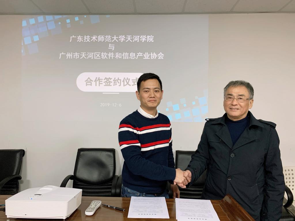 在出席代表的共同见证下,原峰山院长、杨楚州秘书长代表双方单位,现场签署了校企合作协议书,我校将在广州市天河区软件和信息产业协会正式挂牌“校外实践合作基地”。
