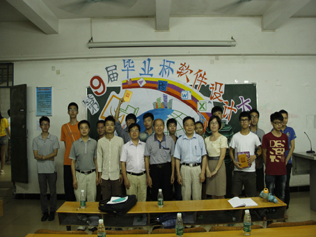 2013年6月3日晚7点30分,我系在4栋101举办了计算机系第九届毕业杯软件设计大赛。大赛由我系学生会干事钟秉峰和涂倩倩主持,并由系常务副主任申青连、党总支书记刘元俊、副主任谌颃、谭汉松教授、孔令美老师、马伟老师、团总支书记吕在艳、学生第二党支部书记杨平以及主席团成员担任嘉宾。