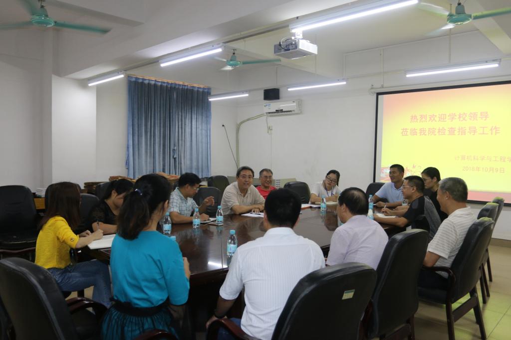 (通讯员 陈星莹)10月9日下午,胡社军校长到计算机学院调研指导工作,实地走访实验室和教职工办公室,了解实验室使用情况和教职工办公环境,并详细听取基层关于学生、教师和管理等方面的情况汇报。