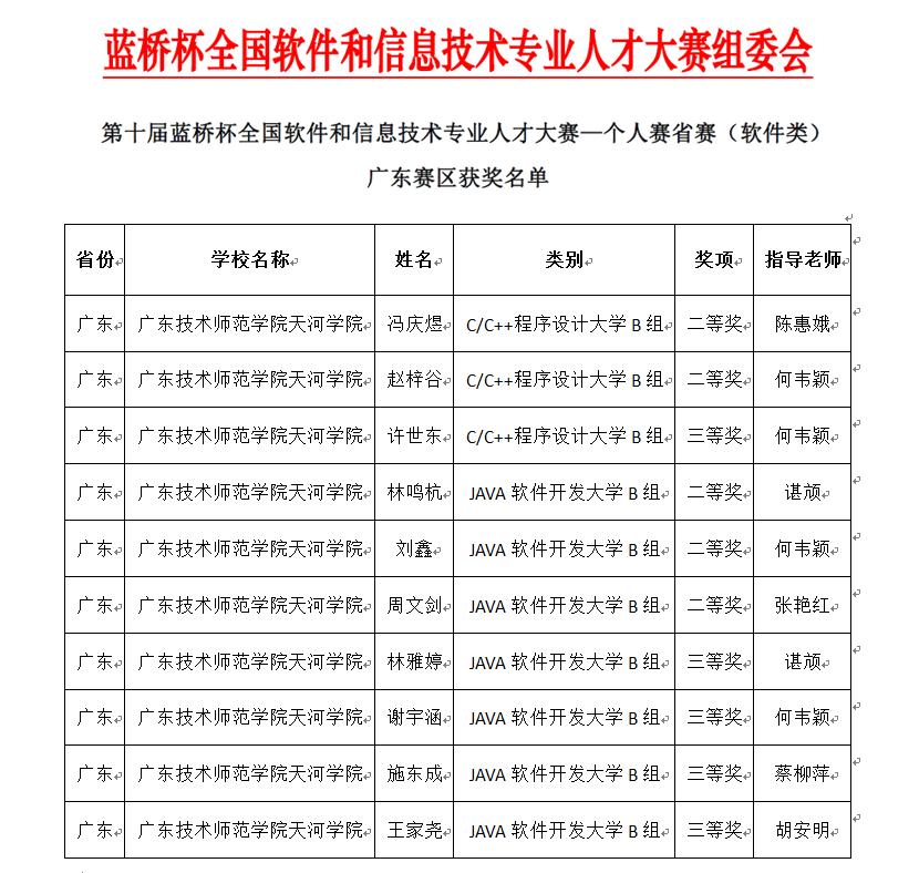 (通讯员 陈星莹)3月28日,由工信部人才交流中心主办的第十届蓝桥杯全国软件和信息技术专业人才大赛个人赛省赛获奖名单揭晓,我校计算机学院10名同学分别获得二等奖和三等奖。