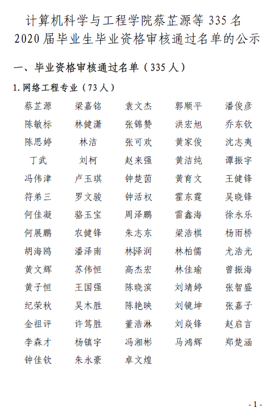 经开云kaiyun体育官方网站学位评定委员会审议,现对计算机科学与工程学院蔡芷源等335名2020届毕业资格审核拟通过名单和拟授予学士学位名单进行公示,公示期为2020.06.01-2020.06.03。