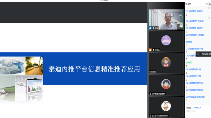 整个讲座主要分为三个环节,张老师一开始就大数据专业岗位需求、就业需求、技能学习进行了介绍。然后通过真实企业项目案例详细(内推就业精准推荐平台的设计与实现)介绍了大数据专业综合应用核心知识,详细地从需求分析、目标设计、工程实现与效果评估几个方面进行讲解。讲座最后张老师针对目前大数据专业就业能力需求与技术工具应用有疑问的同学,展开了现场答疑。