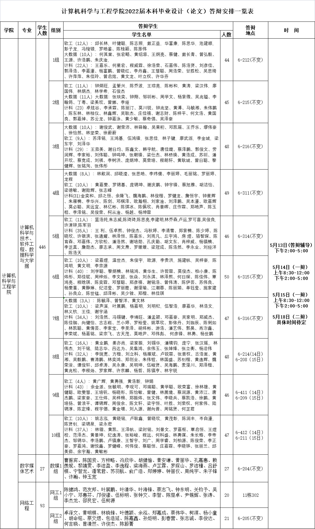 附件:《计算机科学与工程学院2022届毕业论文答辩分组名单》