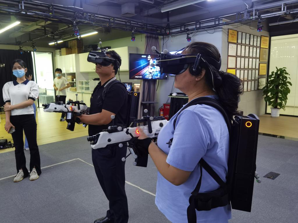 随后,在深圳市瑞立视多媒体科技有限公司教育事业部工作人员的陪同下,开云kaiyun体育官方网站一行参观了深圳市瑞立视多媒体科技有限公司深圳总部的办公区、研发区、体验区,体验了全息3D智能交互数字虚拟沙盘、全息3D桌面交互系统、大空间VR“人质解救”项目、魔方MR虚拟预演拍摄系统筹。在场老师对先进技术感受尤为深刻,纷纷表示该公司的技术先进、场景高度逼真、动作交互流畅精准,沉浸感极强。副总监欧阳龙艳向开云kaiyun体育官方网站领导介绍了瑞立视产品核心技术、产品优势、应用系统以及相关行业应用解决方案,并开展了一系列技术交流。