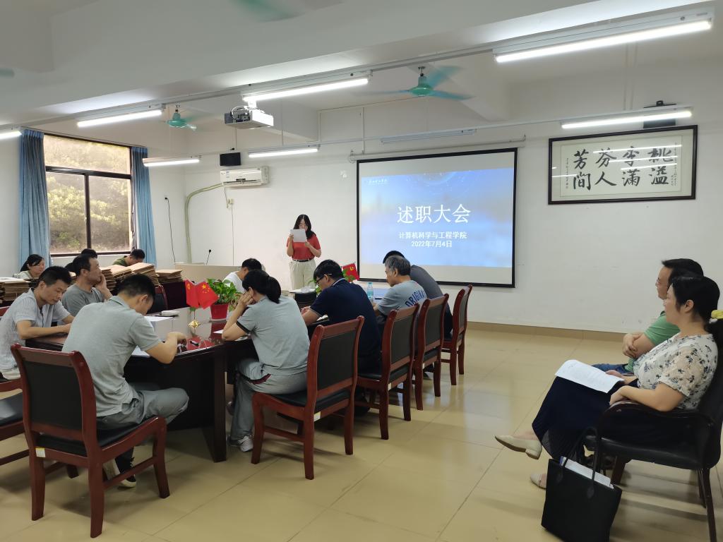 (陈星莹)7月5日上午,计算机学院全体教职工学年述职会议在信息楼会议室召开,总结学年教学、科研、学科竞赛工作成果,谋划推进下一个学年工作。计算机学院院长原峰山主持会议。