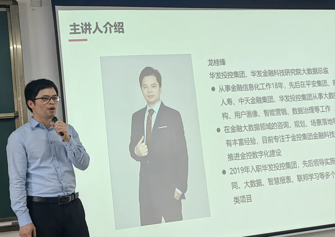 (通讯员:钟桂凤)4月20日下午,计算机科学与工程学院数据科学与大数据技术专业盛邀华发投控集团、华发金融科技研究院大数据总监龙桂峰来我校就“金融产业数字化建设与大数据技术就业务赋能场景应用”开展专题报告,本次讲座主要采用线下方式开展,同时还邀请了美林大数据公司华南区总经理申健先生作为重要嘉宾,计算机学院副院长陈易平、大数据专业系主任钟桂凤以及大数据专业20-22级学生参加了本次讲座。